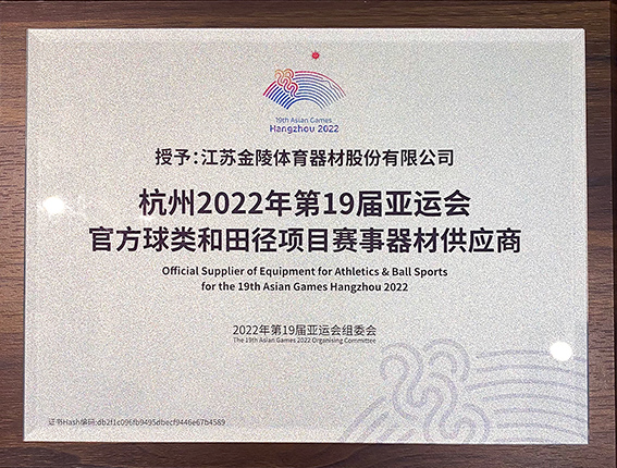 金陵體育被授予杭州2022年第19屆亞運會官方球類和田徑項目賽事器材供應(yīng)商